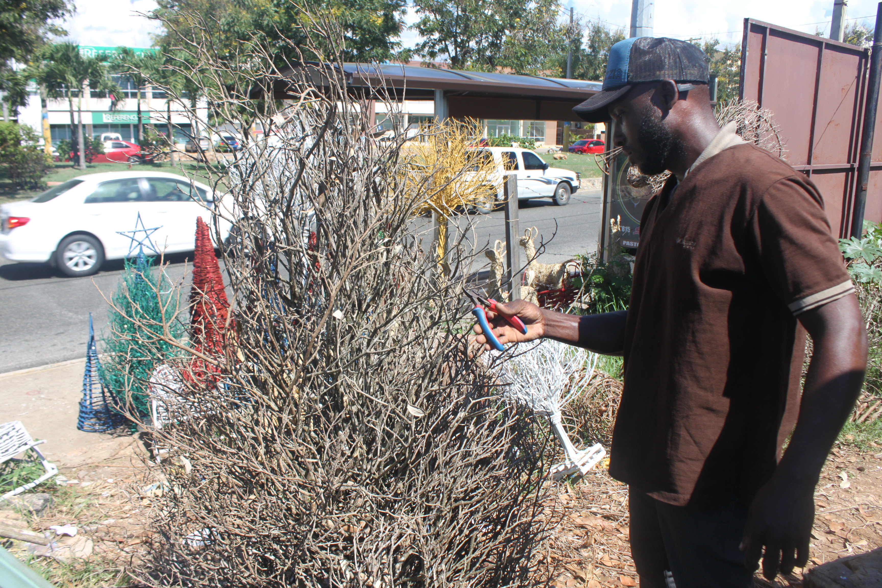 Cuando llega agosto, Heriberto Modesto (Moreno) emigra desde Villa Altagracia a la capital dominicana a vender objetos decorativos navideños hechos a base de ramas secas, tales como arbolitos llamados charamicos. Se instala hasta diciembre en un terreno baldío de la autopista San Isidro, y bajo el sol o la lluvia y una temperatura más calurosa que fresca, elabora los artículos que pueden ir desde un pequeño ángel hasta un árbol de 18 pies de altura.