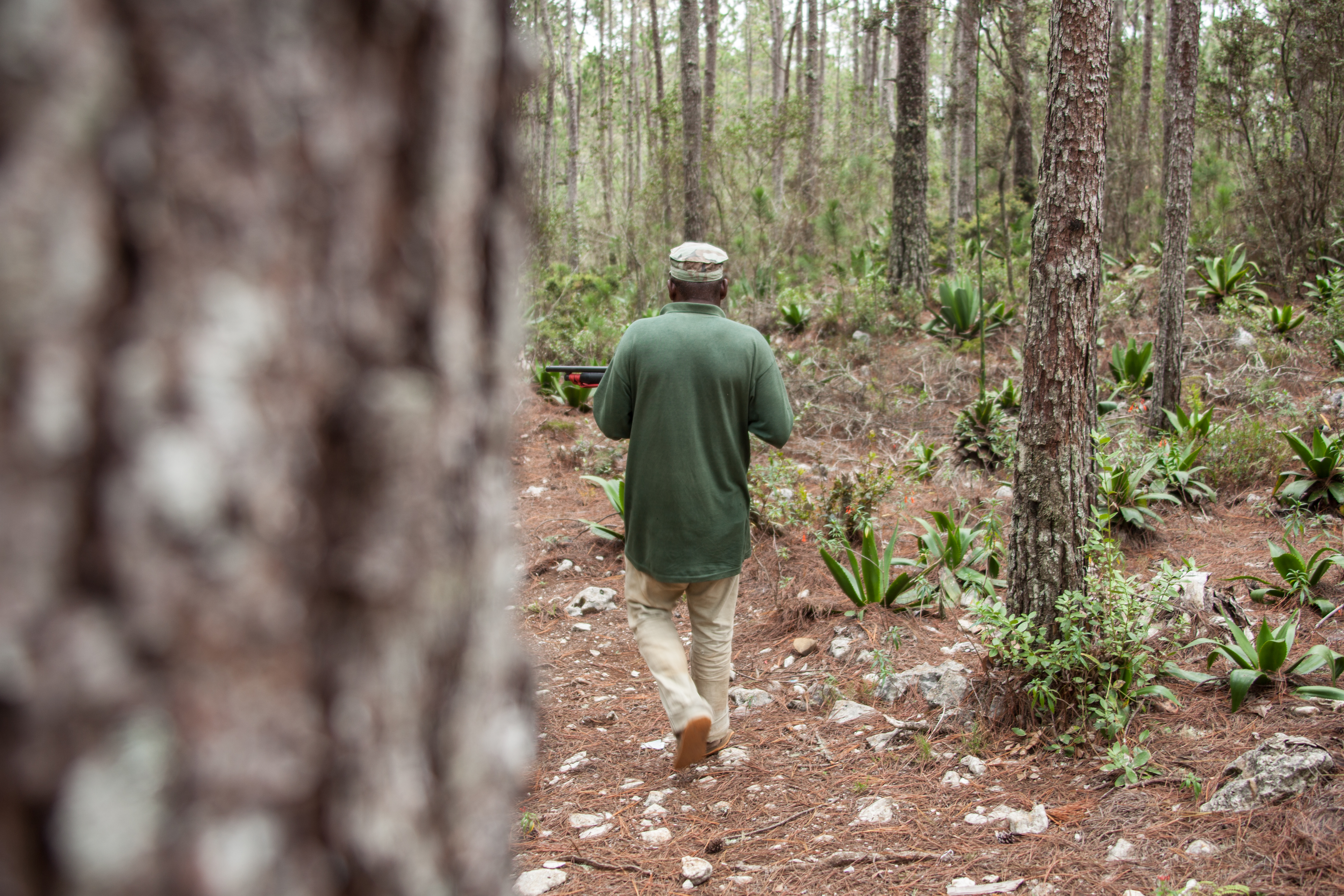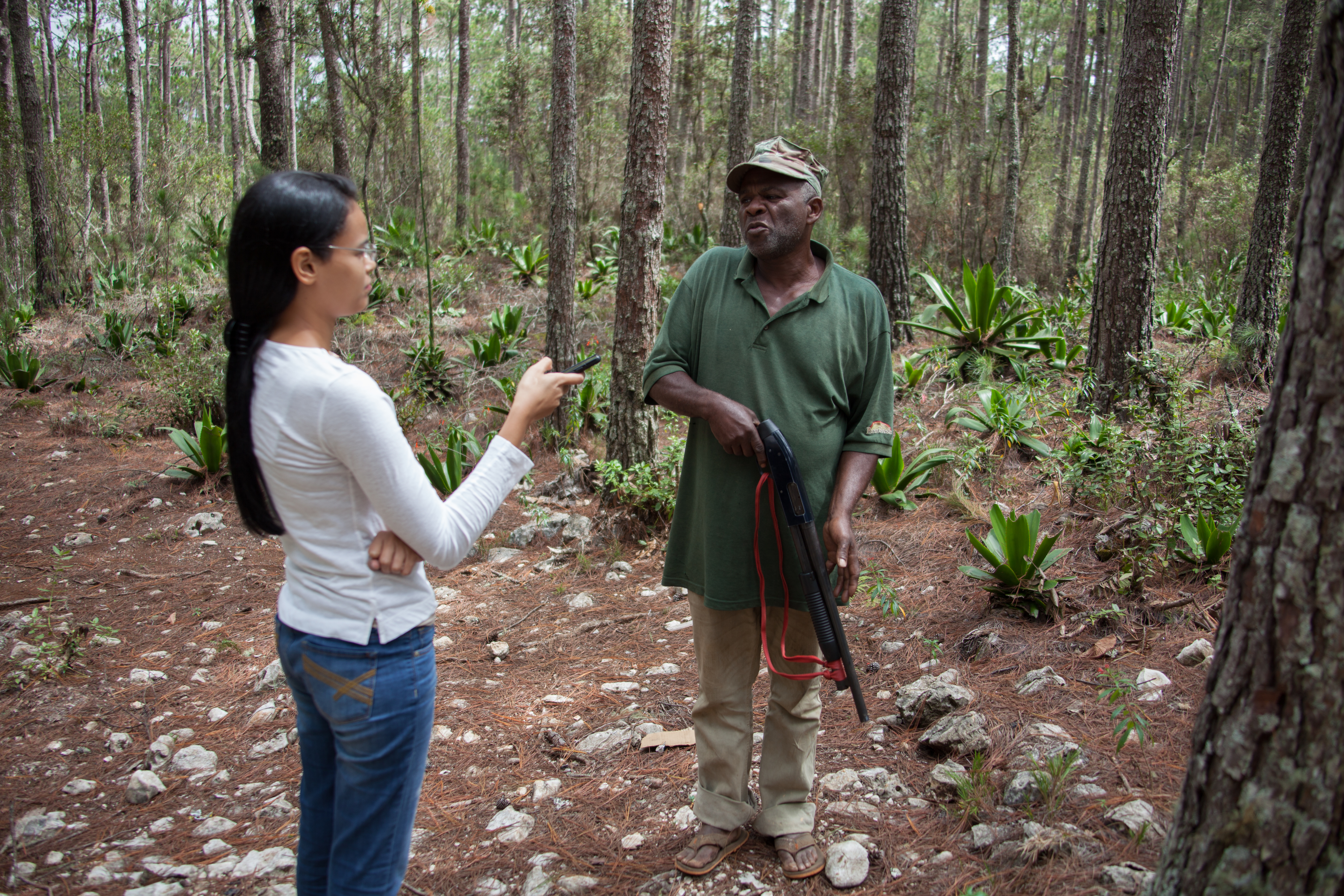 Cuando le tocan sus turnos como vigilante, se pasa ocho días internado en la Sierra de Bahoruco. Pasado ese tiempo, retorna a su casa en el pueblo de Pedernales, para regresar a sus labores 15 días después.