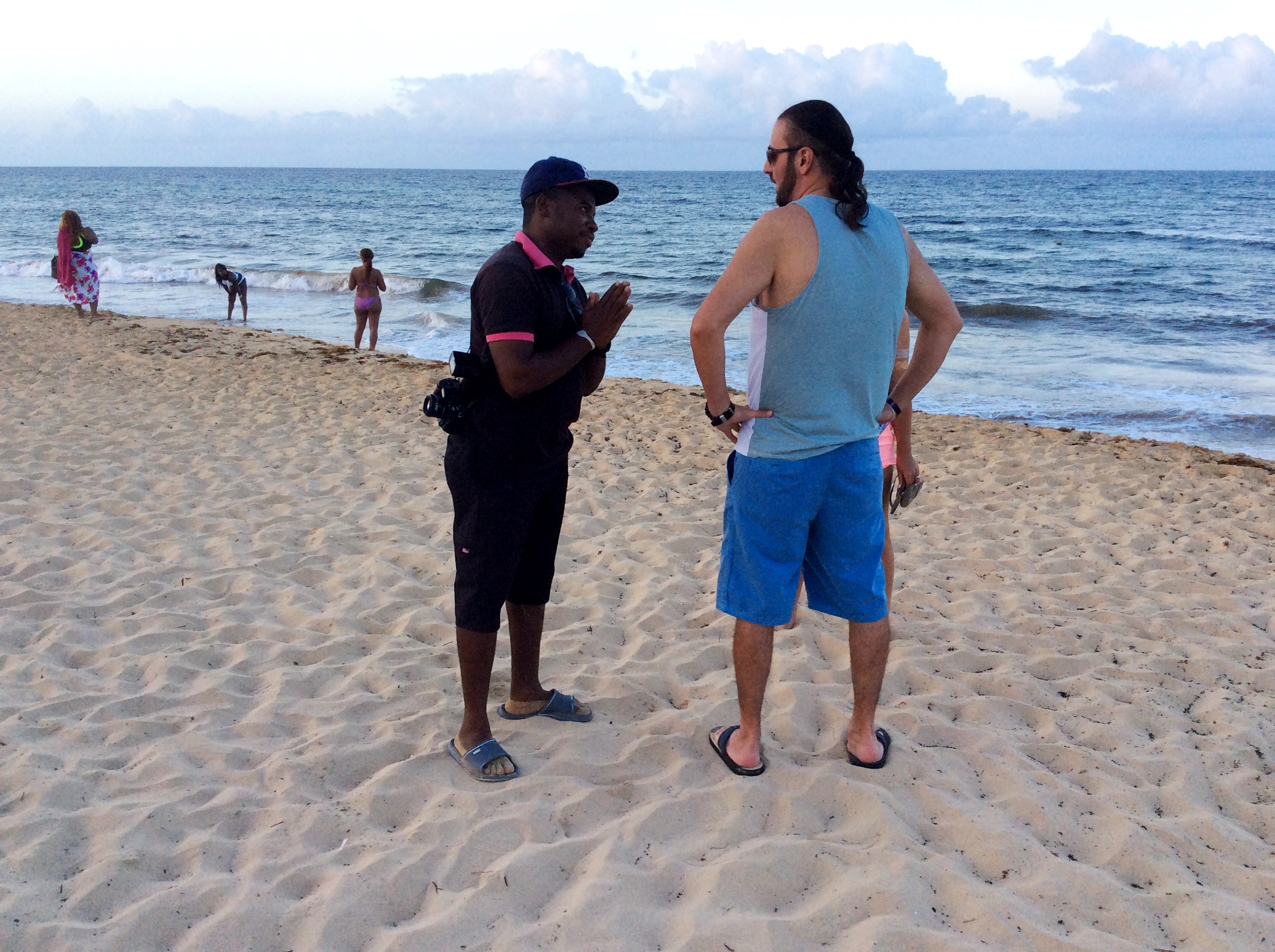 Reginald Cazeau se acerca a mi una mañana, acompañado de un joven que carga una culebra sobre sus hombros por todo el hotel. “¿Quieres una foto?”, me pregunta. Como le tengo pavor a ese tipo de reptil, rápidamente le digo que no. En la tarde, me encuentro nuevamente con este fotógrafo haitiano, de 34 años de edad, pero esta vez tomando imágenes muy románticas en la playa a una pareja de turistas que está de luna de miel.